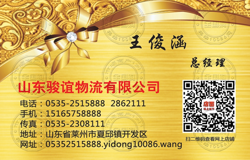 山东骏谊物流有限公司名片-15165758888