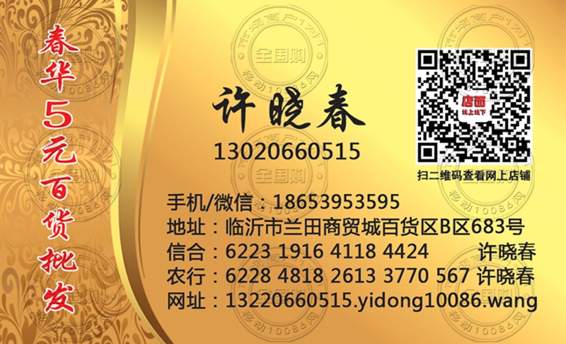 临沂春华五元百货批发名片-18653953595