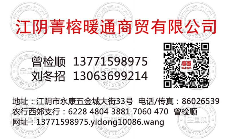 江阴菁榕暖通商贸有限公司名片-13063699214