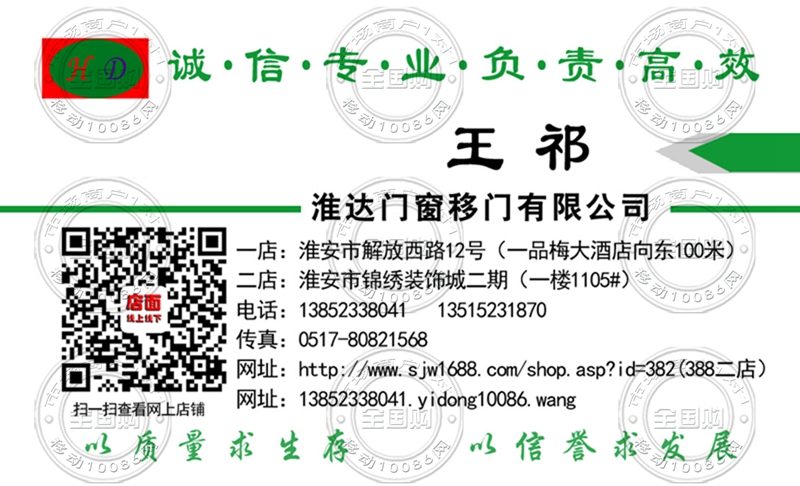 淮达门窗移门有限公司名片-13852338041