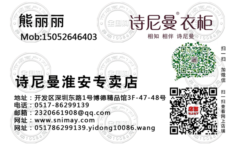 诗尼曼淮安专卖店名片-15505128056
