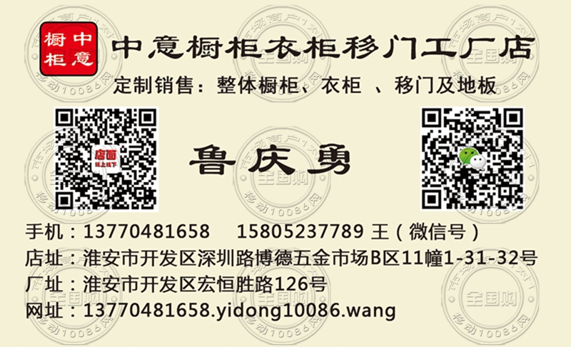 淮安中意橱柜衣柜移门工厂店名片-13770481658