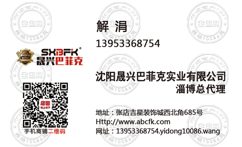 沈阳晟兴巴菲克实业有限公司淄博总代理名片-13953368754