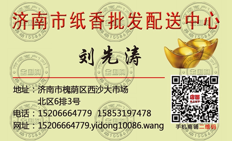 济南市纸香批发配送中心名片-15853197478
