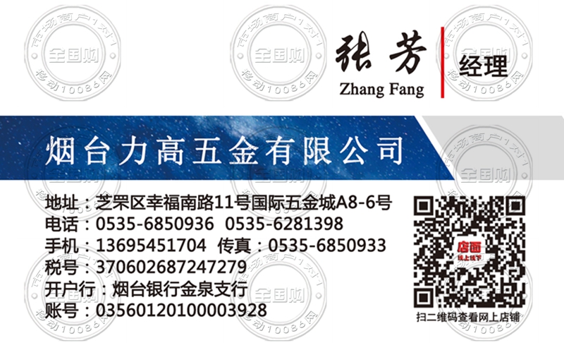 烟台力高五金有限公司名片-13695451704
