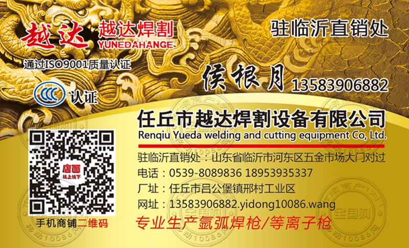 任丘市越达焊割设备有限公司驻临沂直销处名片-13583906882
