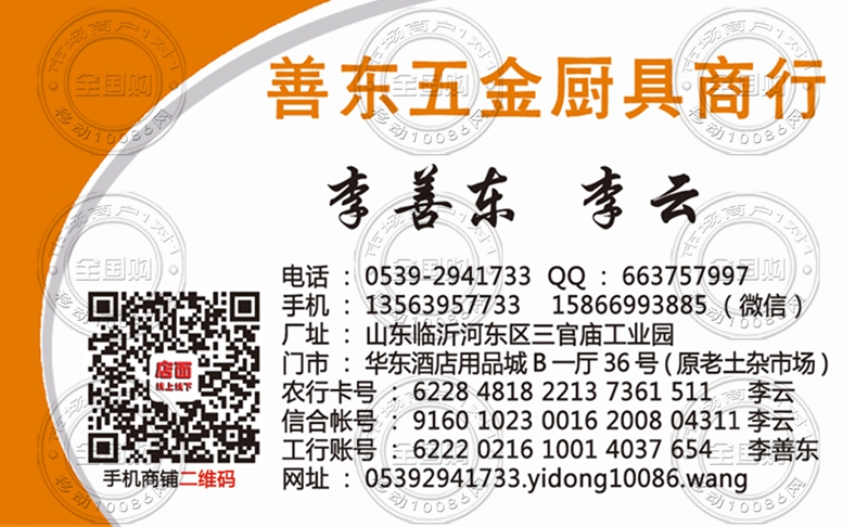 临沂善东五金厨具商行名片-13563957733