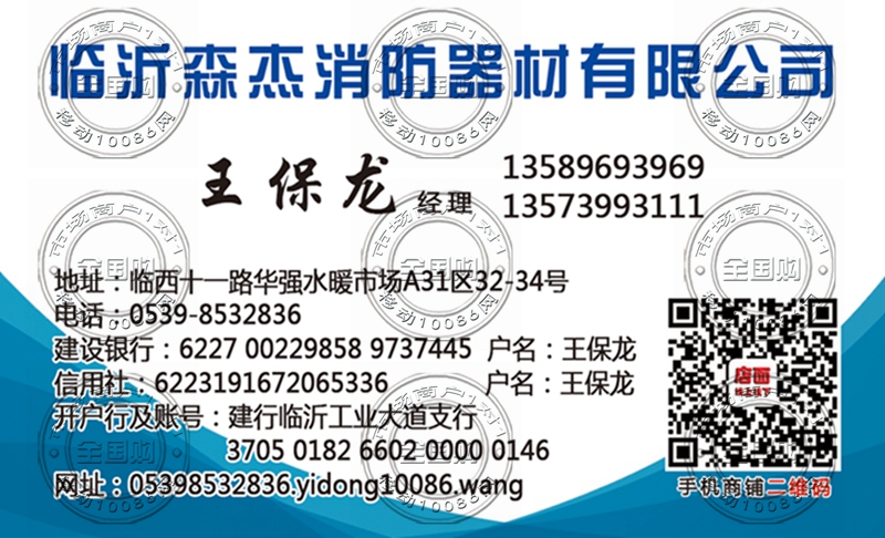 临沂森杰消防器材有限公司名片-13589693969