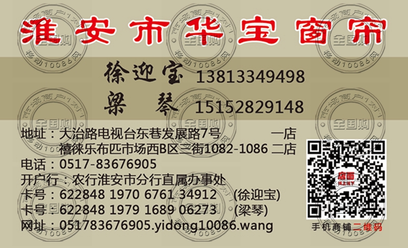淮安市华宝窗帘名片-13813349498
