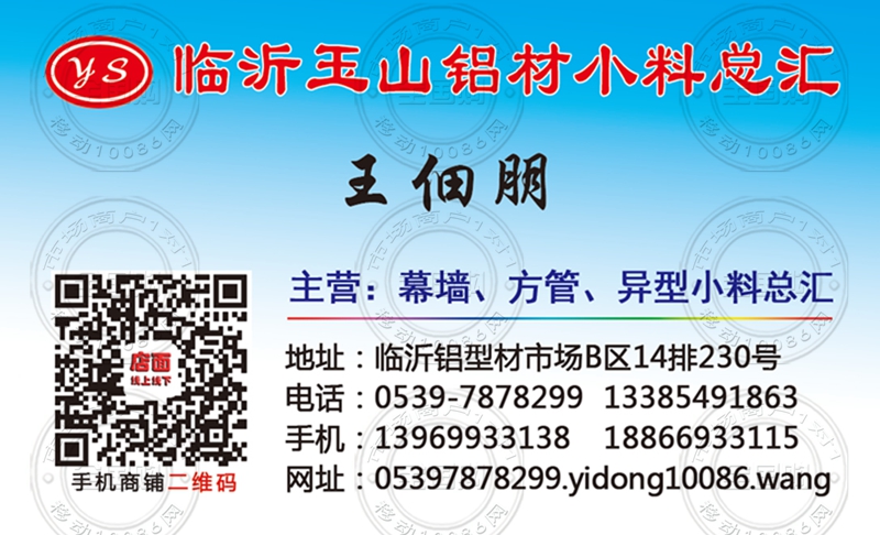 临沂玉山铝材小料总汇名片-13385491863