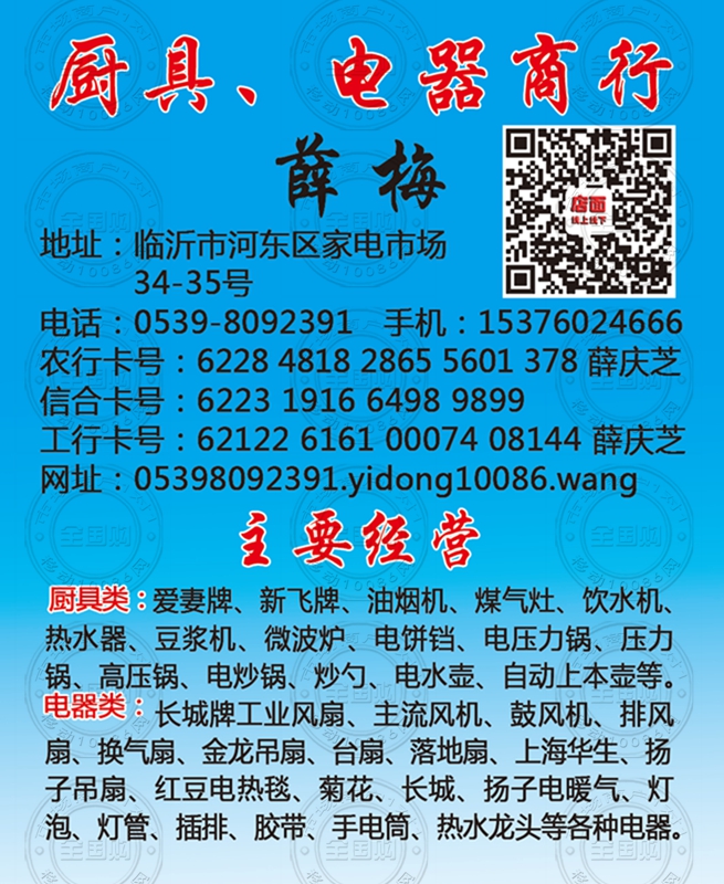 临沂厨具 电器商行名片-15376024666