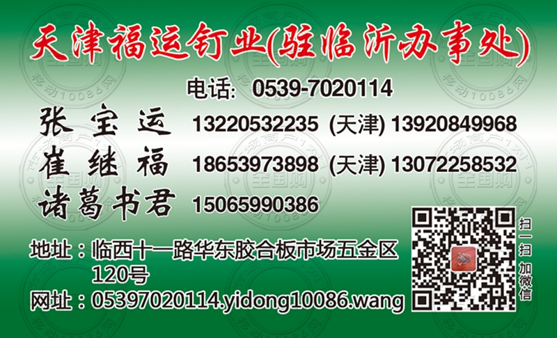 天津福运钉业驻临沂办事处名片-13220532235