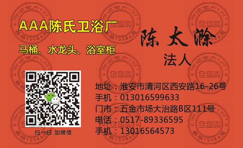 淮安陈王洁具名片-13016599633