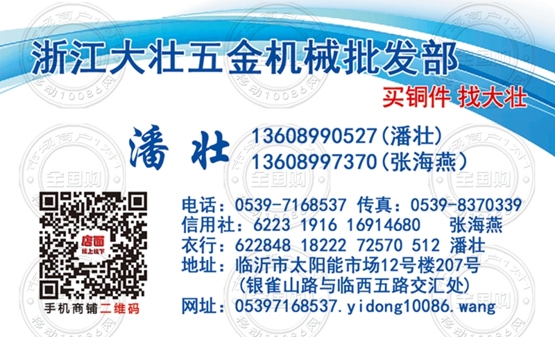 浙江大壮五金机械临沂批发部名片-13608990527