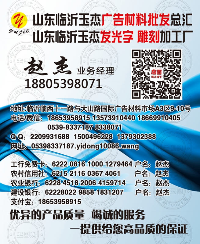 临沂玉杰广告材料批发总汇名片-18653958915