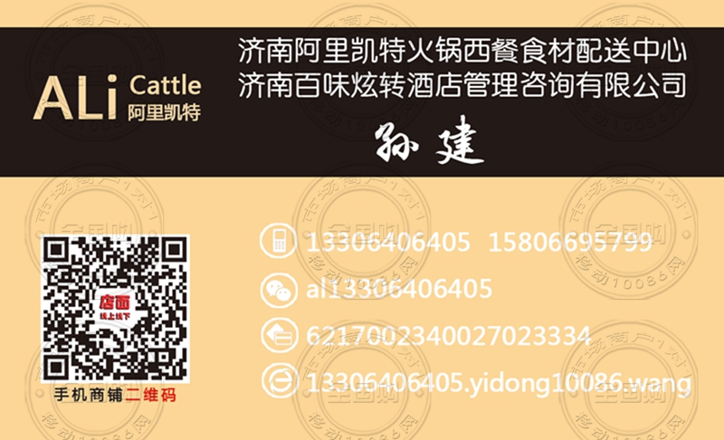 济南阿里凯特火锅西餐食材配送中心名片-13306406405