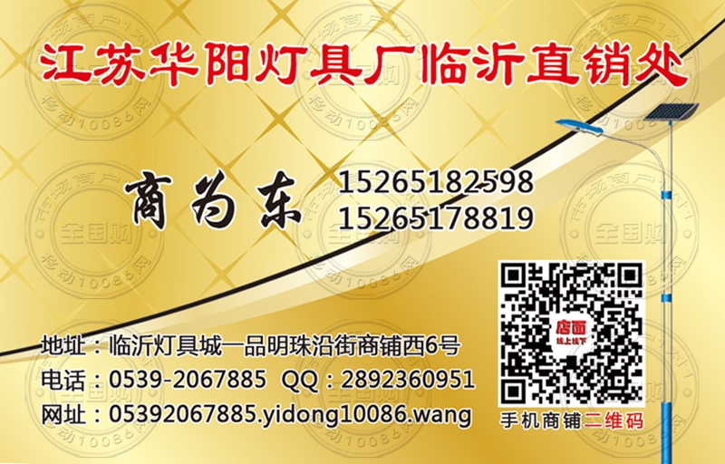 江苏华阳灯具厂临沂直销处名片-15265182598