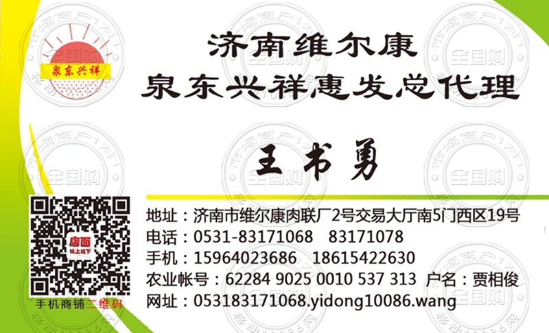 济南泉东兴祥惠发总代理名片-15964023686