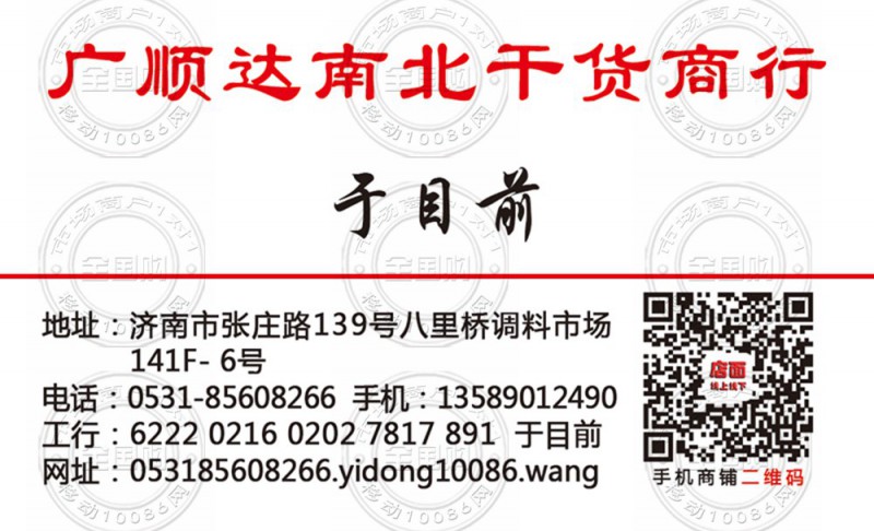 济南广顺达南北干货商行名片-0531-85608266
