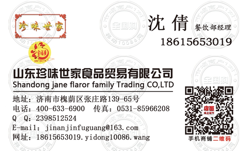 山东珍味世家食品贸易有限公司名片-18615653019
