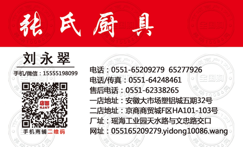 合肥张氏厨具名片-13956908086