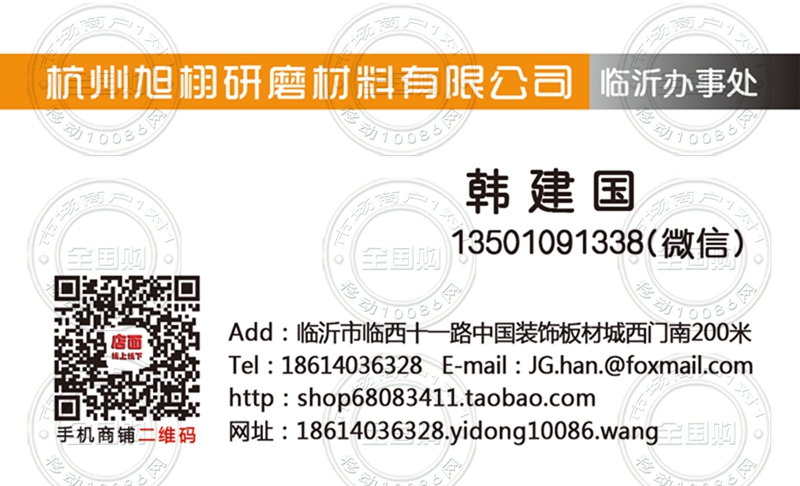 杭州旭栩研磨材料有限公司临沂办事处名片-13501091338
