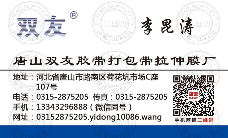 唐山双友胶带打包带拉伸膜厂名片-13343296888