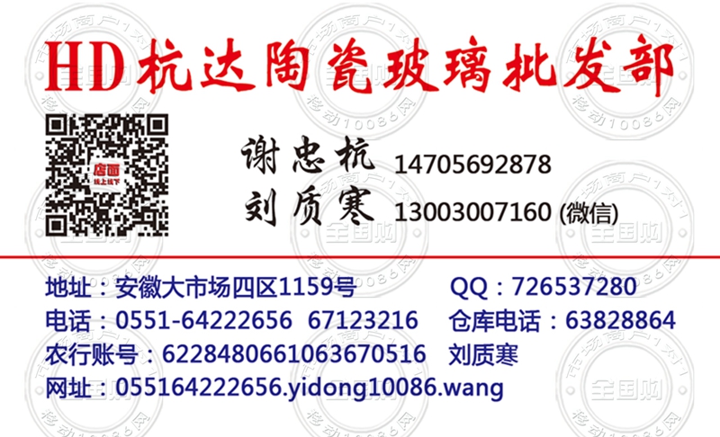 杭达陶瓷玻璃批发部名片-13003007160