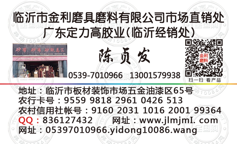 临沂市金利磨具磨料有限公司市场直销处名片-13001579938
