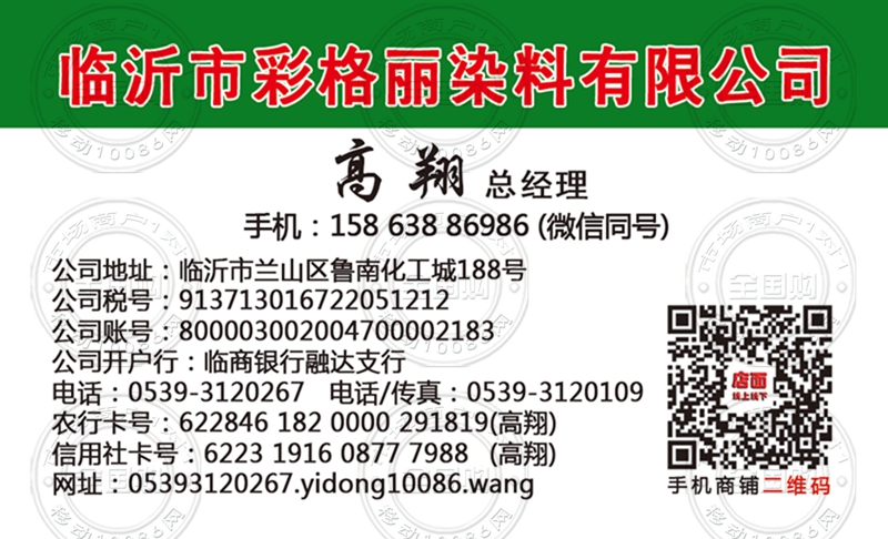 临沂市彩格丽染料有限公司名片-15863886985