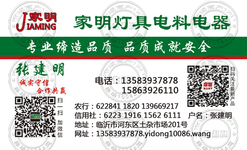 临沂家明灯具电器名片-15863926110
