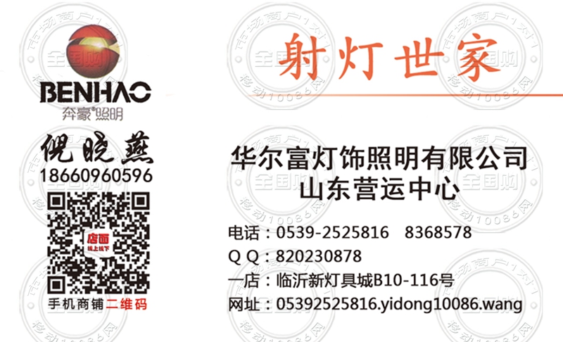 华尔富灯饰照明有限公司山东营运中心名片-18660960596