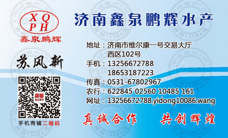 济南鑫泉鹏辉水产名片-18653187223