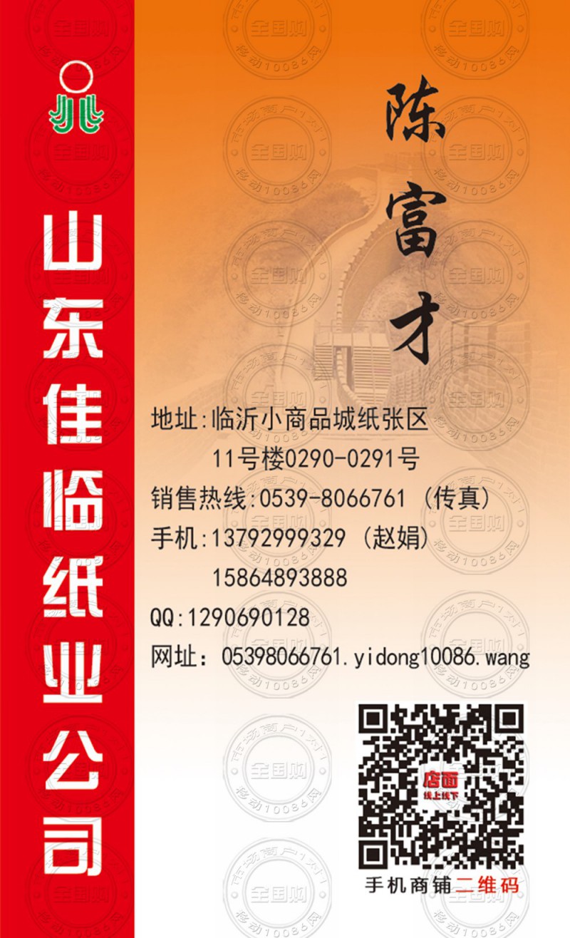 山东佳临纸业公司名片-13792999329