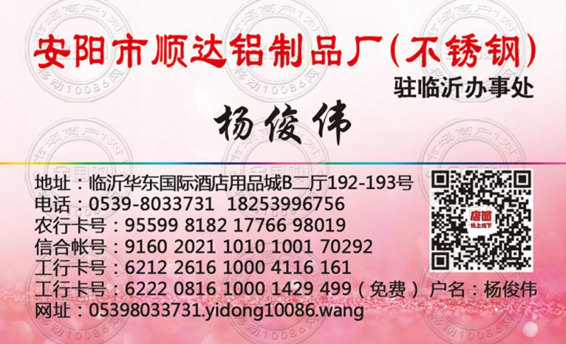 安阳市顺达铝制品厂驻临沂办事处名片-18253996756