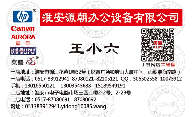 淮安源朝办公设备有限公司名片-13016560121