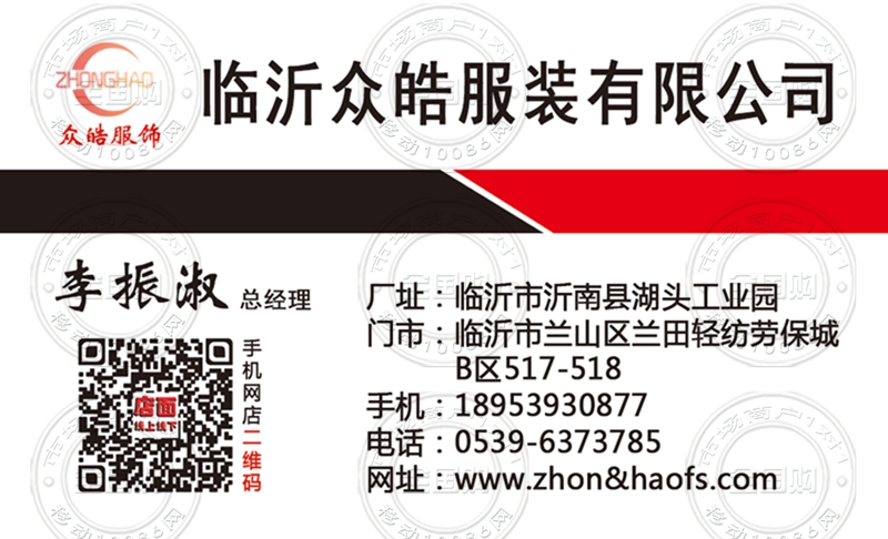 临沂众皓服装有限公司名片-1895393087