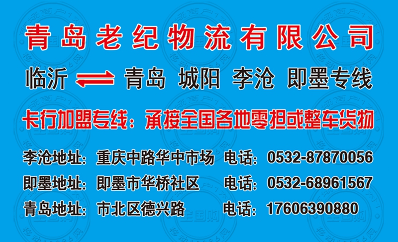 青岛老纪物流有限公司名片-18553282539