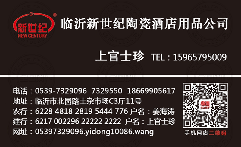 临沂新世纪陶瓷酒店用品公司名片-18669905617