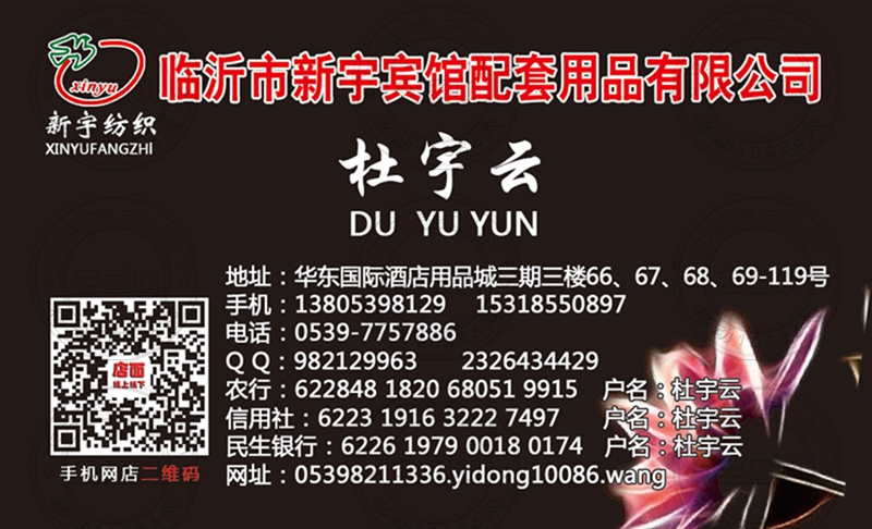 临沂市新宇宾馆配套用品有限公司名片-13805398129