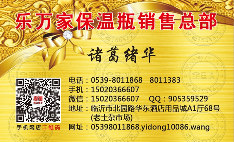 临沂乐万家保温瓶销售总部名片-15020366607