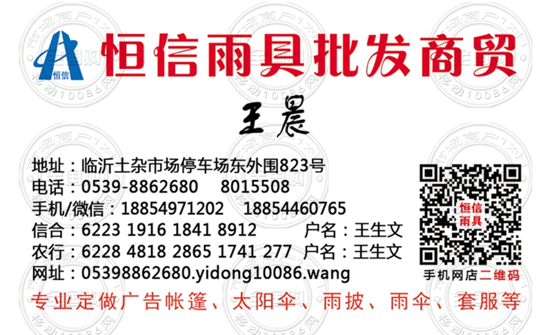 临沂恒信雨具批发商贸名片-18854971202