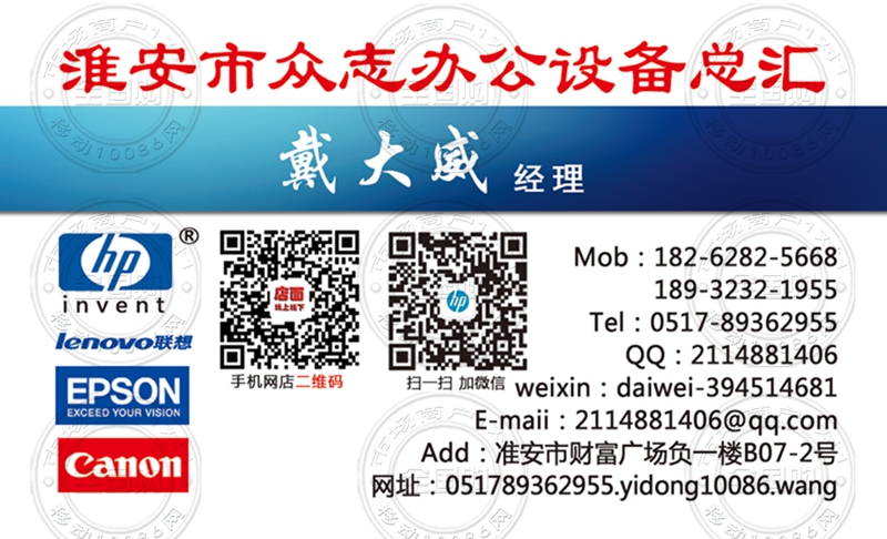 淮安市众志办公设备总汇名片-18262825668