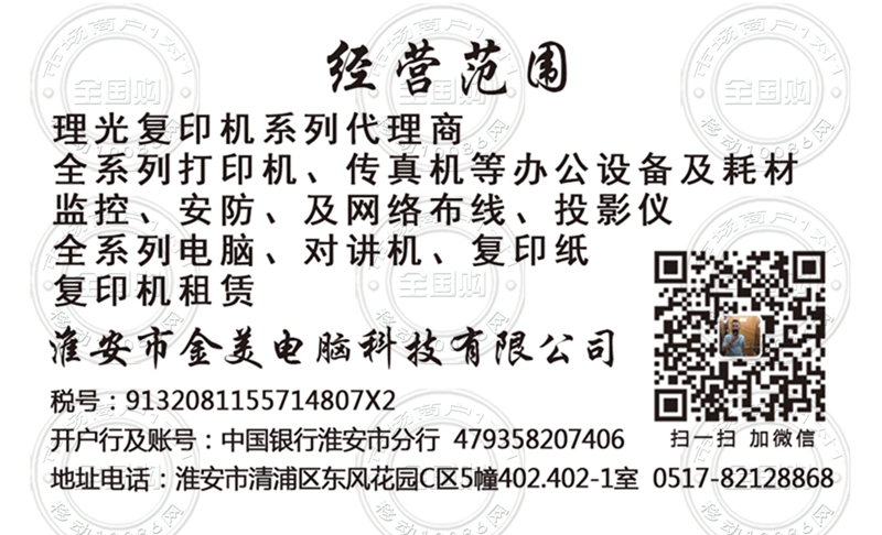 淮安市金美电脑科技有限公司名片-13852397775