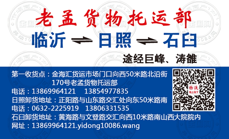 临沂老孟货物托运部名片-13854977835