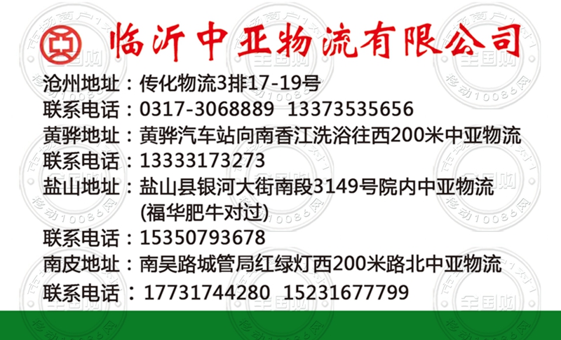 临沂中亚物流有限公司名片-13355092929