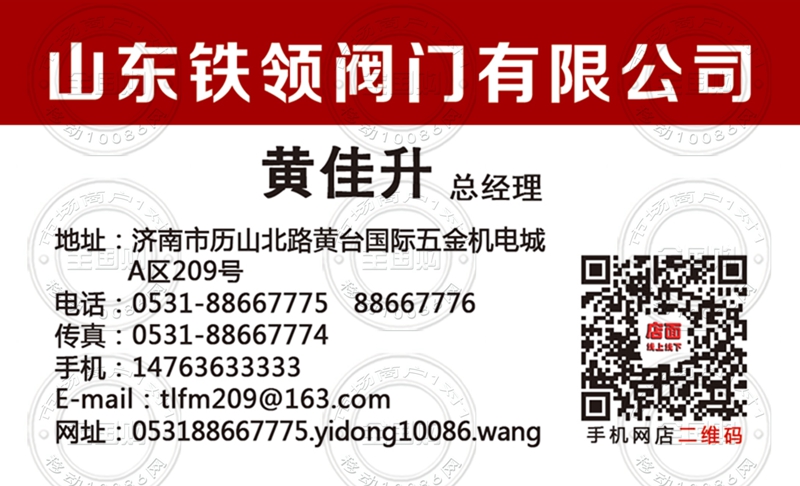 铁岭阀门有限公司山东总代理名片-14763633333