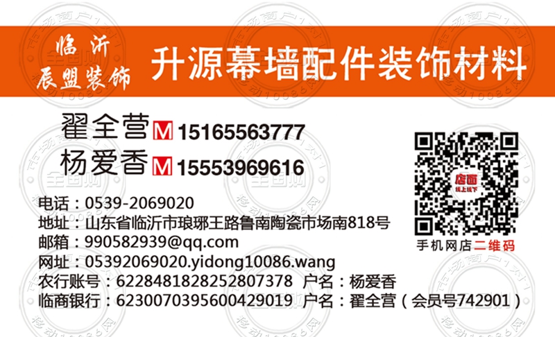 临沂辰盟装饰 升源幕墙配件商行名片-15553969616
