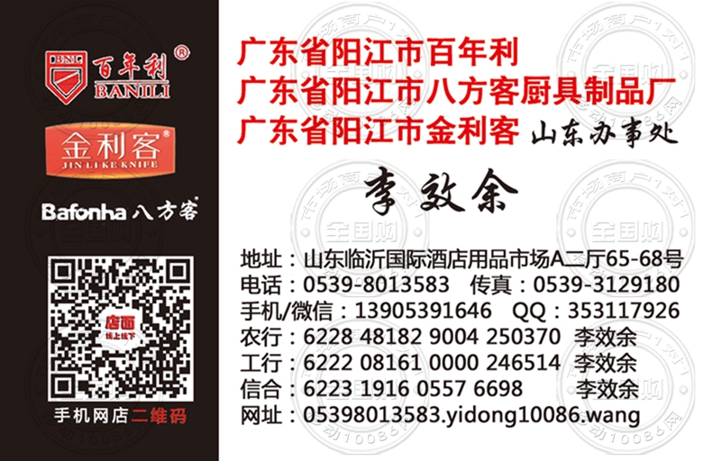 广东省阳江市金利客厨具制品山东办事处名片-13905391646