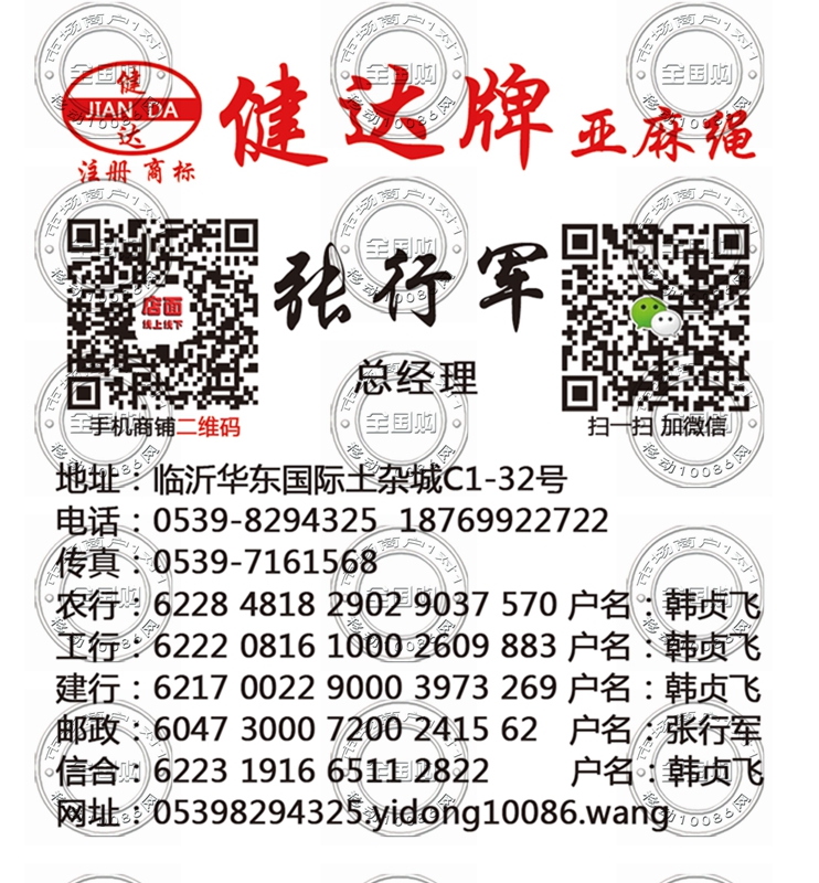 临沂健达牌亚麻绳名片-18769922722